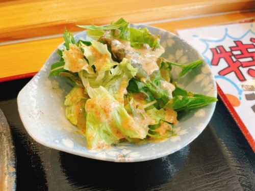 ミニサラダもとっても美味しそう!ドレッシングもたっぷりかけてくださっています。バクバクいっちゃいました!