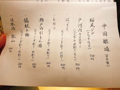 メニューを見てみると懐かしいものがずらりと!お腹が減ってきます。ドリンクメニューには中国醸造専用のメニューもありました~!うれしいです!