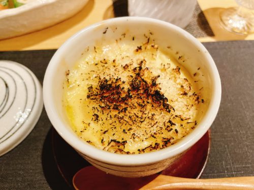 続いてグラタンのようなお料理が!オニオングラタンスープな感じでしたが、これがめちゃめちゃ美味しい~!お酒にもとってもよく合いますよ~!