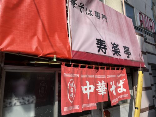 さて、今朝は朝早くから一仕事していたため9時過ぎにはすでにお腹ペコペコになっていました。こういう時はきまってこちらに伺います。朝10時から営業されている寿楽亭さんです!中華そばのお店ですね!朝10時から中華そば?ぜんぜんいけますよ~!