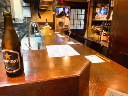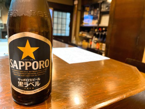 まずは瓶ビールで乾杯!そうそう、今のところは生ではなく瓶でビールをいただくようになっています。サッポロ黒ラベル美味しい~!