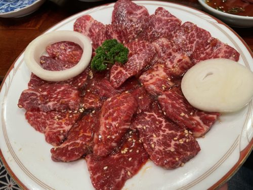 そして焼肉屋さんで一番のお楽しみはハラミ!たっぷりお願いしてみました!登場したハラミがこれまたとっても美味しそう!お肉の赤身の感じが素晴らしい!しっかり焼いていただくと、柔らかさもちょうどよくてお肉自体の旨味も素晴らしい!そしてタレもとっても美味しい!あっという間に食べきってしまいました!