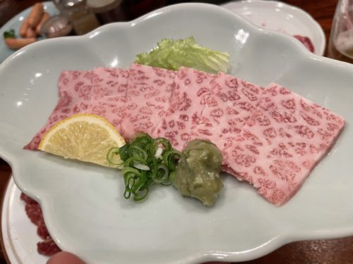 すんごいお肉が登場しました!一切れだけと言い聞かせながらいただいてみると、、、うんまい!タレにつけなくてもうまみで最高!