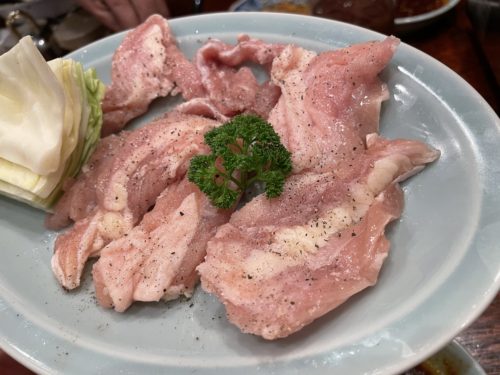 さて、美味しい焼肉屋さんの千里馬さんの続きです。特選カルビの美味しさに驚きを受けつつ、次に頂いたのはもう一度タン塩を!タン塩があまりに美味しかったのでみんなでもう一度注文してみました!もう一度食べてもやっぱり美味しい~!ほどよい肉質がこの老体にはちょうどいい~!
