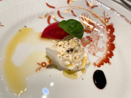 そしてこのお皿には30年もののバルサミコ酢が!このバルサミコ酢が美味しいのなんのって!チーズをつけていただいてびっくり!最後なんて指で全部さらいました。それくらい美味しい~!ツンとした酸味が皆無なんです。さすが30年もの!