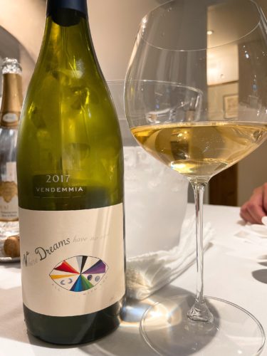 さて、昨日ご紹介いたしましたボッテガニックさんの続きです。次のお料理が登場する前に白ワインをお願いしました。もちろんおまかせです。エチケットがとってもおしゃれですね~!