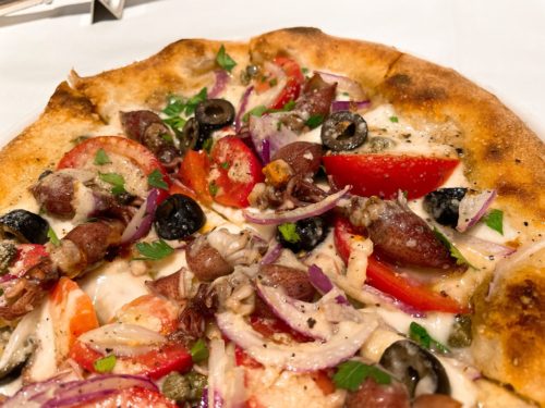 もう一枚ピザが登場しました!このピザがこれまたすごい!立派なホタルイカがこれでもかとたっぷりのっています。そしてトマトも!そう、あの徳谷トマト52番がのっていました!