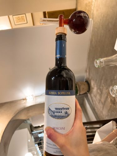 ボトルをあけたと思ったら何やらフラスコのようなものが、、、なんと一杯ずつデキャンタができる器具なんだそうです!初めて見ました!