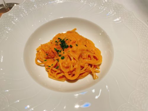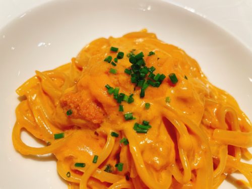 続いて北海道の塩水ウニのクリームソースパスタが登場しました!いい色していますね~!とっても美味しそう!