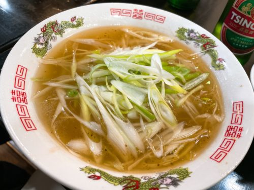続いてチャーハンを食べるか、ネギラーメンを食べるか迷ったのですがネギラーメンに!明昌飯店さんの代名詞の一つですね~!ネギもたっぷりのっています。