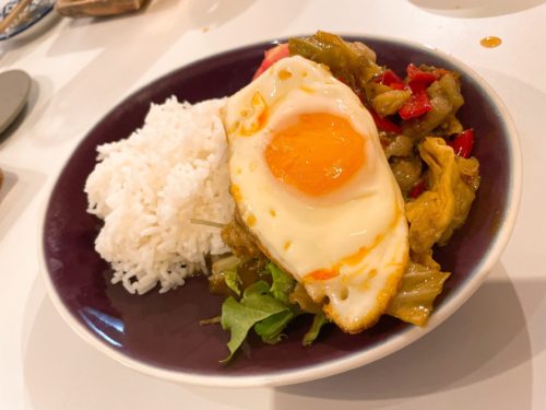 ガパオとはハーブの一種なんです。目玉焼きと一緒に登場するのが多いですね。バルタン食堂さんも目玉焼きをつけてくださいました。