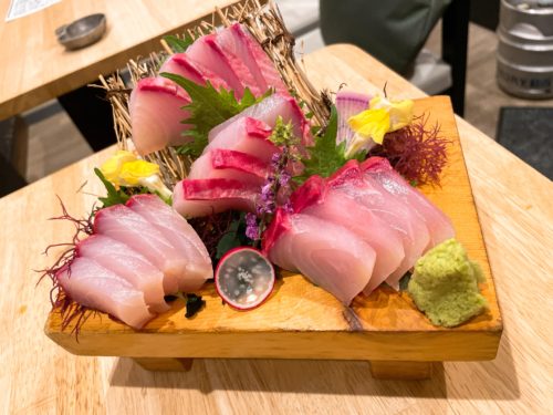 続いてヒラマサがあったのでそちらをお願いしました!とんでもないボリュームで登場しました!こちらのヒラマサは先輩が釣ってこられたものだったのですが、もうはちゃめちゃに美味しいヒラマサでした。こんなに脂の乗ったヒラマサも久々にいただきました!