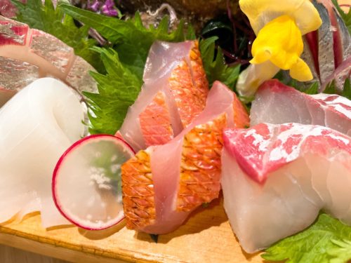 よ~くみてみると、アマダイ、ニシン、キンメダイ、中トロ、水イカ、たいらぎ、シマアジ、サザエとものすごいラインナップです!