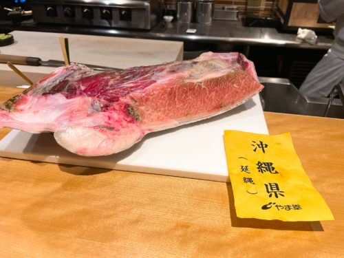 そしてついに登場しました!やま幸さんの沖縄産の本マグロのカマトロ!やま幸さんでも年間通して継続的に購入していないとこのカマトロの部分は回ってこないんだそうです。すごい一品です!