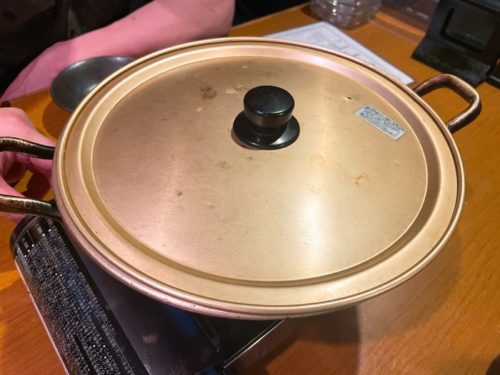 ここでお願いしていた鍋が登場しました!私はいつもかんてきさんではお鍋をお願いします!この日も特製のお鍋を!この昔ながらの鍋がいい雰囲気ですよね~!