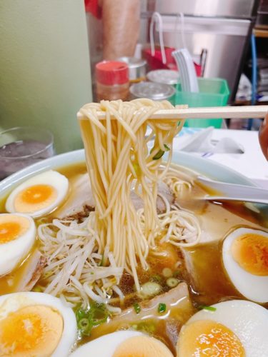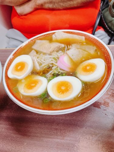スープに玉子がよくあいますね~!確かにいくらでも食べれます!半分ほど食べたところで、ふとkobutaさんの方をみると、、、え?!食べ終えていらっしゃいました。す、す、すごい!