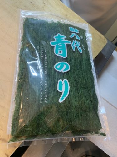 「八代の手揉み青のりです!これ美味しいんですよ~!」