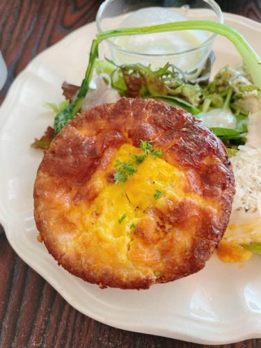 キーマカレーのキッシュもめちゃめちゃ美味しいです!かぼちゃとナッツのサラダもかぼちゃの甘みとナッツの食感が素晴らしい~!美味しいです!