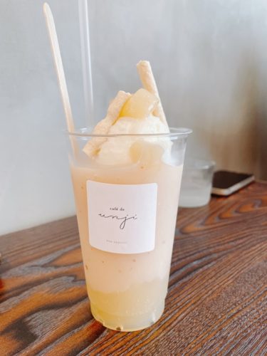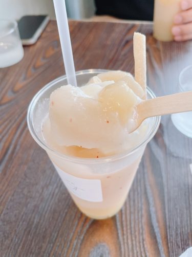 続いてデザートが登場しました!なんと桃とジャスミンのフラッペです!これまた美味しそう!いただいてみると桃がたっぷり使ってありました!超美味しい~!