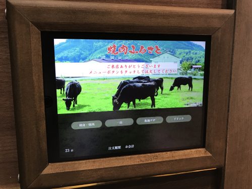 席に到着してまずはタッチパネルで生ビールをお願いします。タッチパネルで焼肉を注文ってのもすごいですね~!おいしい生ビールをいただきながらいろいろお願いしました!