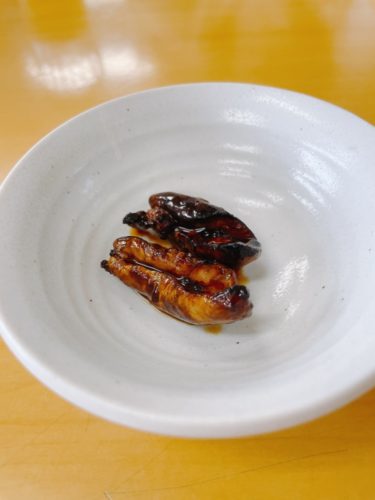お店に入って席についてまずは鰻の肝をいただきます!とっても美味しいです!最高!