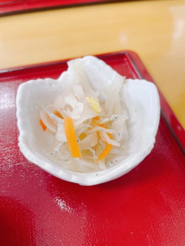 一品もついてきますよ~!とってもおいしいなま酢!このなま酢がとっても美味しいんですよね~!毎回思います。買って帰りたいな~と。