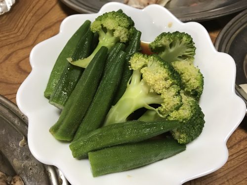 あけみちゃんがオクラとブロッコリーを出してくれました~!さっぱりしているからとってもおいしい~!