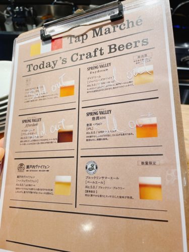 まずは何をいただこうかなと思ったら、海外のビールがタップで飲めるようです。私はブルックリンサマーエールをお願いしました!タップでいただくビール、美味しいですね~!