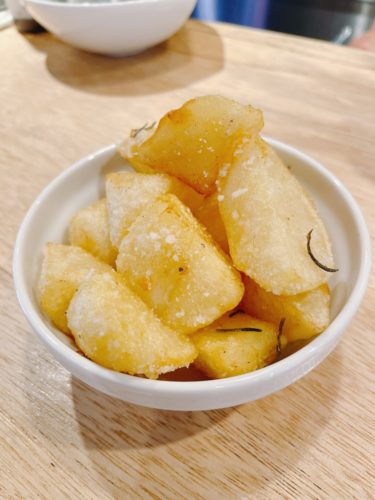 大好物のポテトをお願いしました!ポテトフライも一工夫されています。ほっくほくでとっても美味しい~!立ち飲み屋さんの定義って私が若いころ全然違いますね!安い、早い、うまいじゃなくて、安い、早い、相当うまい!になっています。