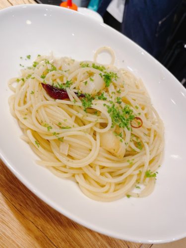 そしてパスタをお願いしました!オイルとクリームの2種類を!まずはペペロンチーノから!こんなボリューム出したらほかの料理食べれないよと思わず言っちゃいそうになるほど!そしてすごく美味しい!
