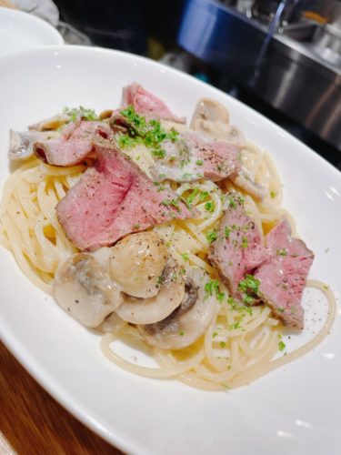 クリームパスタなんてローストビーフが、、すごすぎます!ホタテもマッシュルームもたっぷり入っています!これで1000円しません!びっくり!