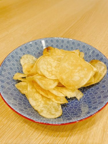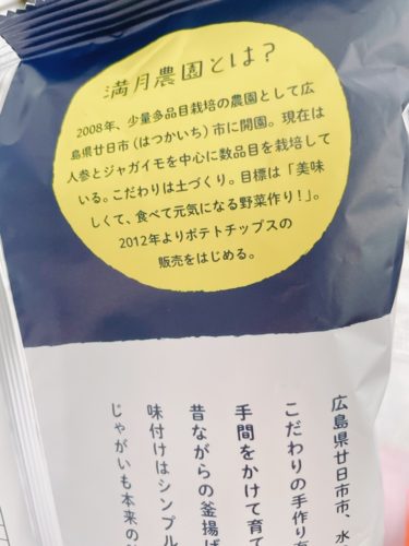 さっそく購入して自宅で食してみました!満月チップスはしっかりと最初の一口目の風味を大事にしてください。おそらく塩味が薄めに感じると思います。そこから2枚目、3枚目とかみしめていくとだんだんとポテトの美味しさがわかってきます。4枚目くらいなるとめちゃめちゃ美味しいのがわかるんです。ほんと毎回おもいますが、不思議なポテトチップスです。