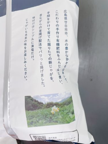 広島で育てられたさつまいもで作ったポテトチップです。たとえて言ってみると、地ビールならぬ地チップスみたいな感じでしょうか。