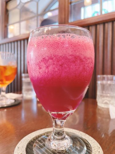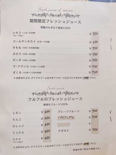 メニューを見て期間限定のフルーツジュースを選びました!この日はぶどうがありましたのでぶどうをお願いします!