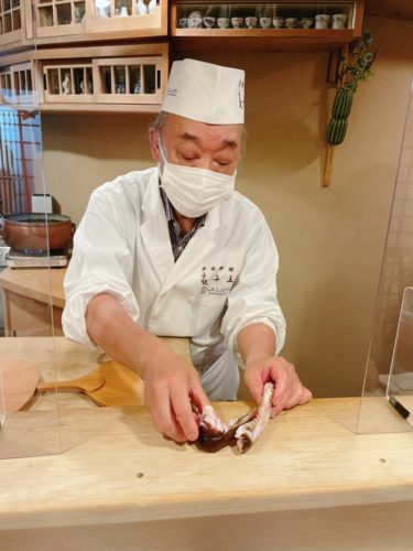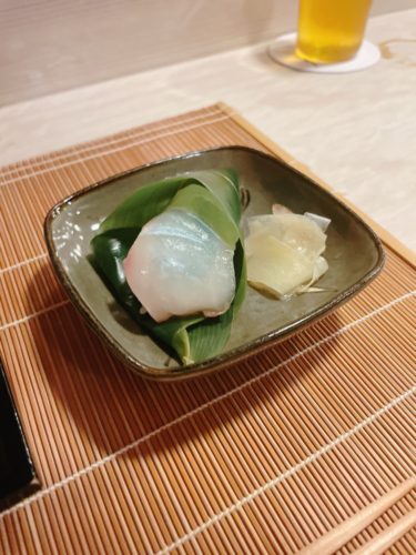 そして萩沖で取れたクエの握りが登場しました!これがクエですか~!頂いてみると、淡泊かと思ったらとっても美味しい~!クエなんてなかなか食べれないので興奮です!