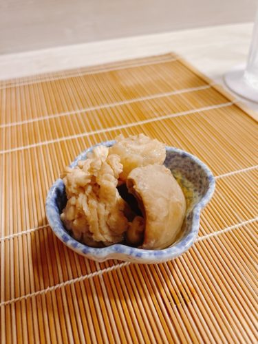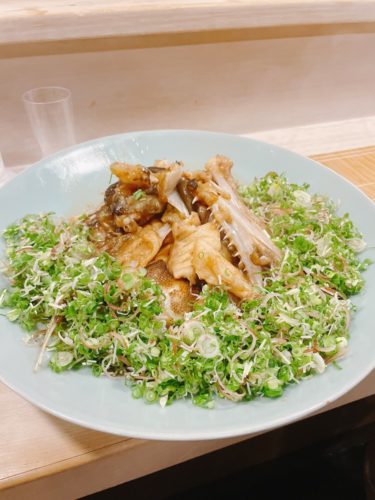 これがとっても美味しくってびっくり!なかなか食べれない代物ですね。胃袋は歯ごたえがほどよくあってとっても美味しい~!クエの子は初めていただいたのですが、これがまためっちゃくちゃ美味しい~!一尾まるごと持ってきたので食べることができたんですね~。