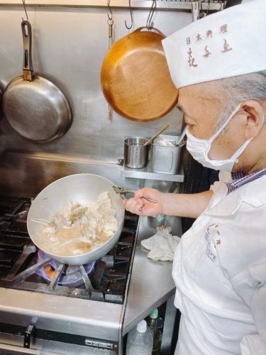 クエづくしを食べる機会はあんまりないのでほんと感動の嵐です。続いては先生がちょっとこっちにきてみんさいと厨房に招いてくださいました。