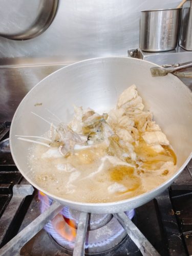 そこであら炊きを見せてくださいました!喜多丘さんのあら炊きはほんのり上品な甘みが大好物です。こうやってしっかり煮込んでいくんですね~!すごい!