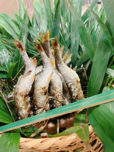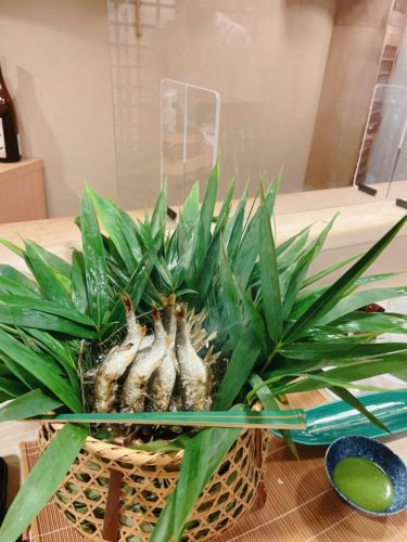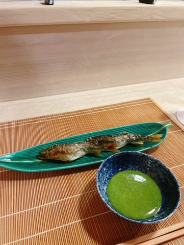 さて、さきほどの日本料理喜多丘さんの続きです。クエづくしかと思いきや、さすがです。ほかにも琵琶湖の鮎をご用意してくださいました!