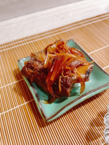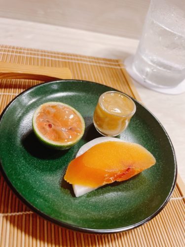 そして鹿児島の黒豚を糖で5時間炊いたものだそうです。骨からすっと外れたお肉から上品な甘さを感じます。相当美味しい!