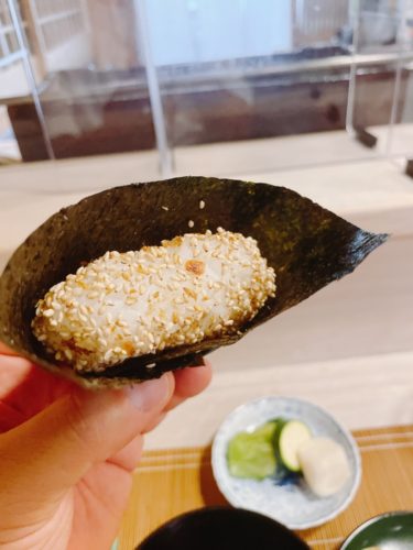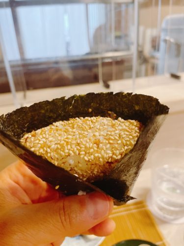 特製のゴマふりかけをふんだんにつかったおにぎり!海苔も最高!