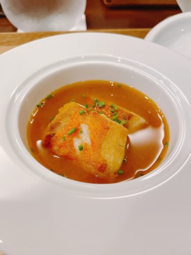 続いて登場したお料理はこれまたサスエ前田さんのキンメダイのスープドポアソン!キンメダイは5日寝かしだそうです。めっちゃめちゃいい香りがしてきます。いただいてみると、うわ!とっても美味しい~!