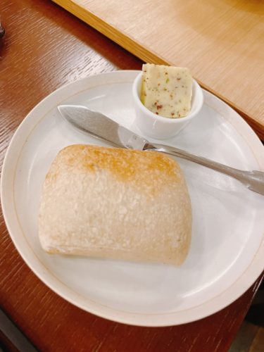 一緒にパンもいただきます!このパンが馳走2924らしさ!フランスで作られたパンを焼いてくださいました!一緒に海藻のバターでいただきます。これめっちゃめちゃ美味しいので要注意です。すぐおかわりっていっちゃいます。みんなおかわりしちゃいました!