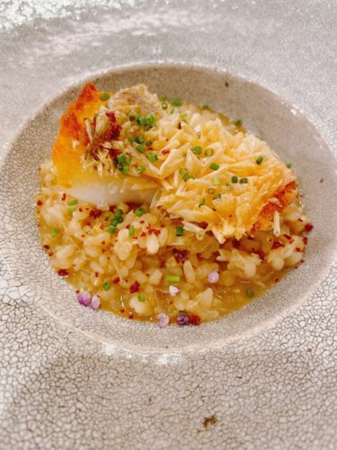 最後は5日間寝かせた白甘鯛を使ったリゾットです!なんと毛ガニも入っていました!梅干しを乾燥させたものと一緒にいただきます!最高!