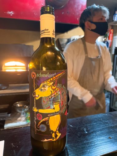 まずは白ワインで乾杯!エチケットがおしゃれです。おいしい~!
