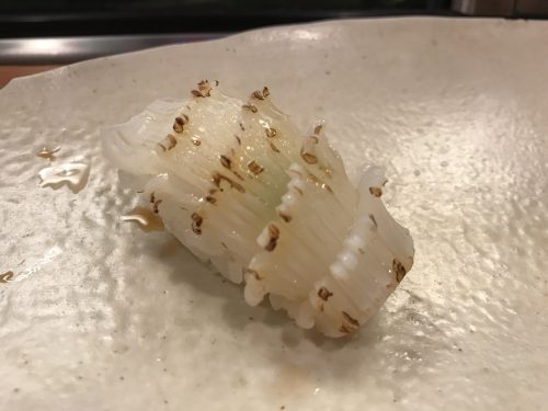 大好物のイカをお願いしました!このイカもこれまたおいしい~!食べれば食べるほどお腹がすいてきてしまうこの感じを不思議におもいながら名店の凄みを感じさせてもらいました。