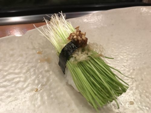 芽ネギをお願いしました!小さいころは芽ネギなんてみたことなかったですが、最近どこのお鮨やさんでもありますよね~。最後の一品に最適ですね!