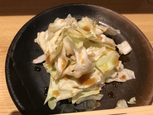 おいしい生ビールをいただきながら、キャベツをつまみます。おいしいキャベツです!お腹いっぱいでちょっと飲むだけって言っていましたが、焼き鳥の香りを少し嗅いだらどんどんお腹減ってきました。ということで普通に食べてしまうという、、、それだけおいしいってことです!