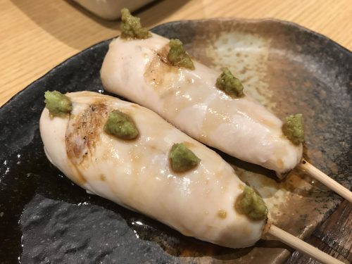 串はささみからいただきました~!ふっくらしてジューシーでほんのり甘い!とってもおいしいささみです~!体にもいいですからね~!