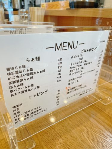 カウンターに座ってもう一度メニューを確認します!やはり初めてなのでおそらく一番おすすめであろう醤油らぁ麺をお願いすることに!